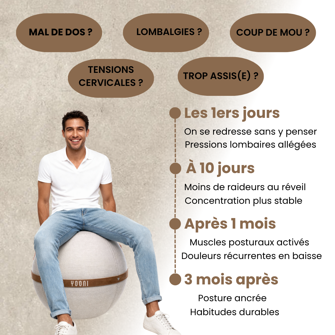 -Phase d’adaptation : commencez par 10–20 min, alternez avec votre chaise, puis augmentez progressivement.