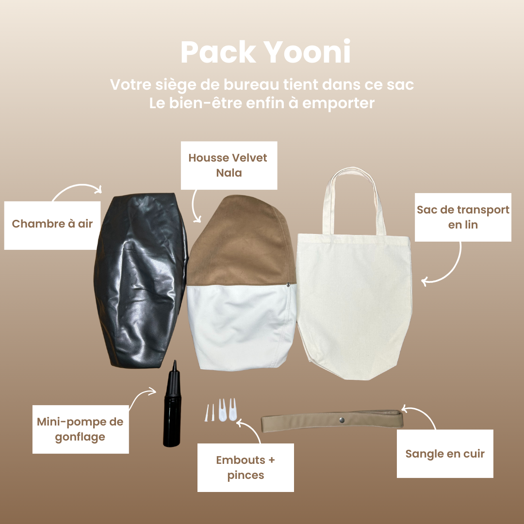 Oui, il se dégonfle et se range à plat. Grâce au sac en lin et à la mini-pompe fournie, le siège Yooni s'utilise partout comme chez vous. Son poids est de 1,5kg (housse + chambre à air + mini-pompe) et son épaisseur une fois plié est de 15cm. Toutes ces caractéristiques font que Yooni est l'outil parfait pour travailler lors de vos déplacements.